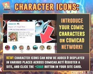Show off your comic OCs on Comicad.net! You can now add & display CHARACTERS from your creative works across various places on Comicad. Simply register a website, & click the +char button, or add a character via your Public Profile page!